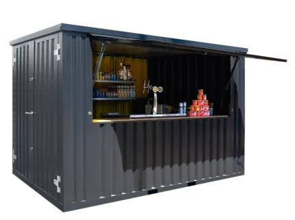 Conteneur Montage Rapide vous présente notre conteneur bar démontable, il répond à un besoin de stockage. Qu’il soit de l’ordre privé ou professionnel, ce produit peut être assimiler pour un conteneur ou bien un abri de jardin.
